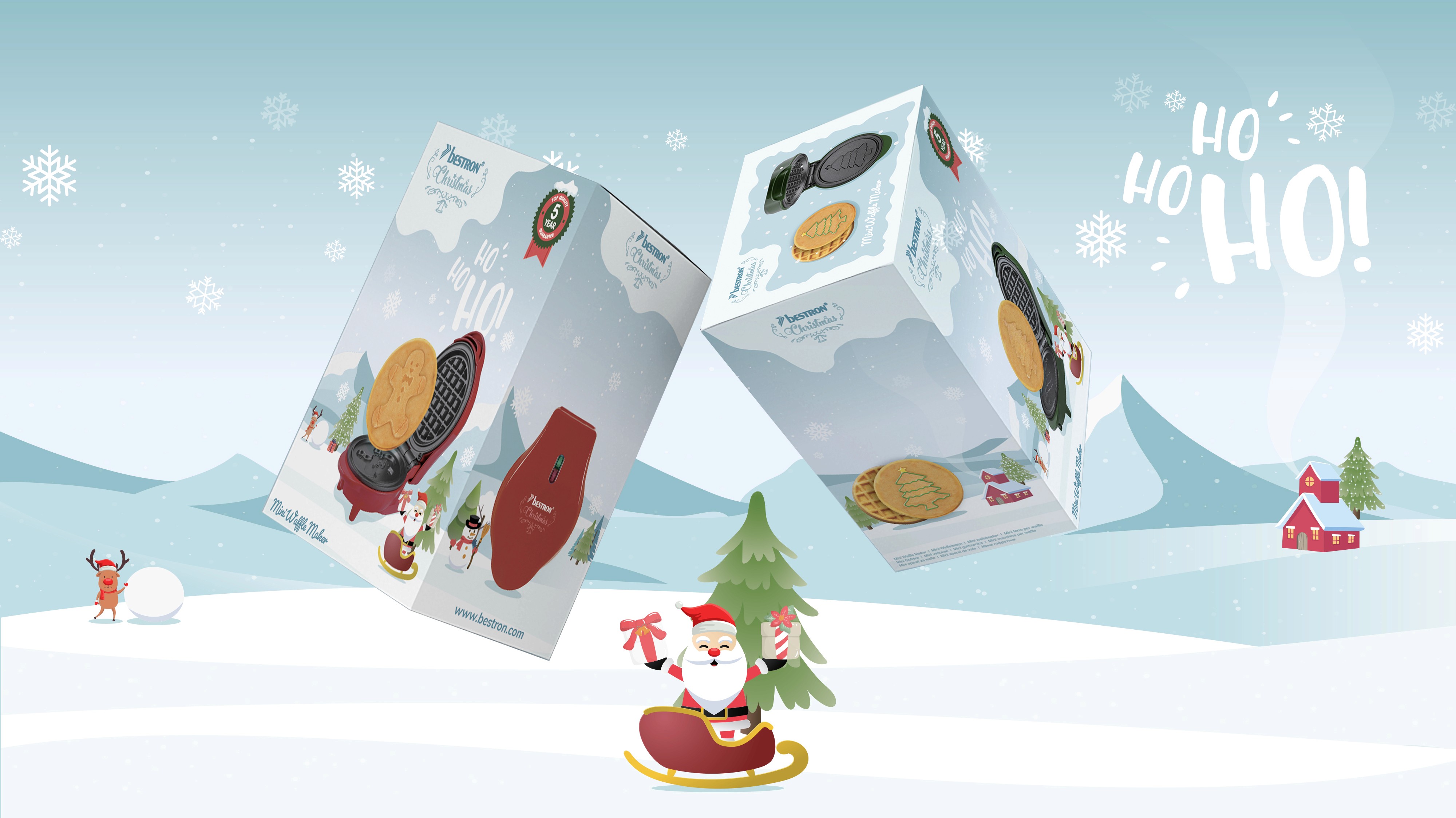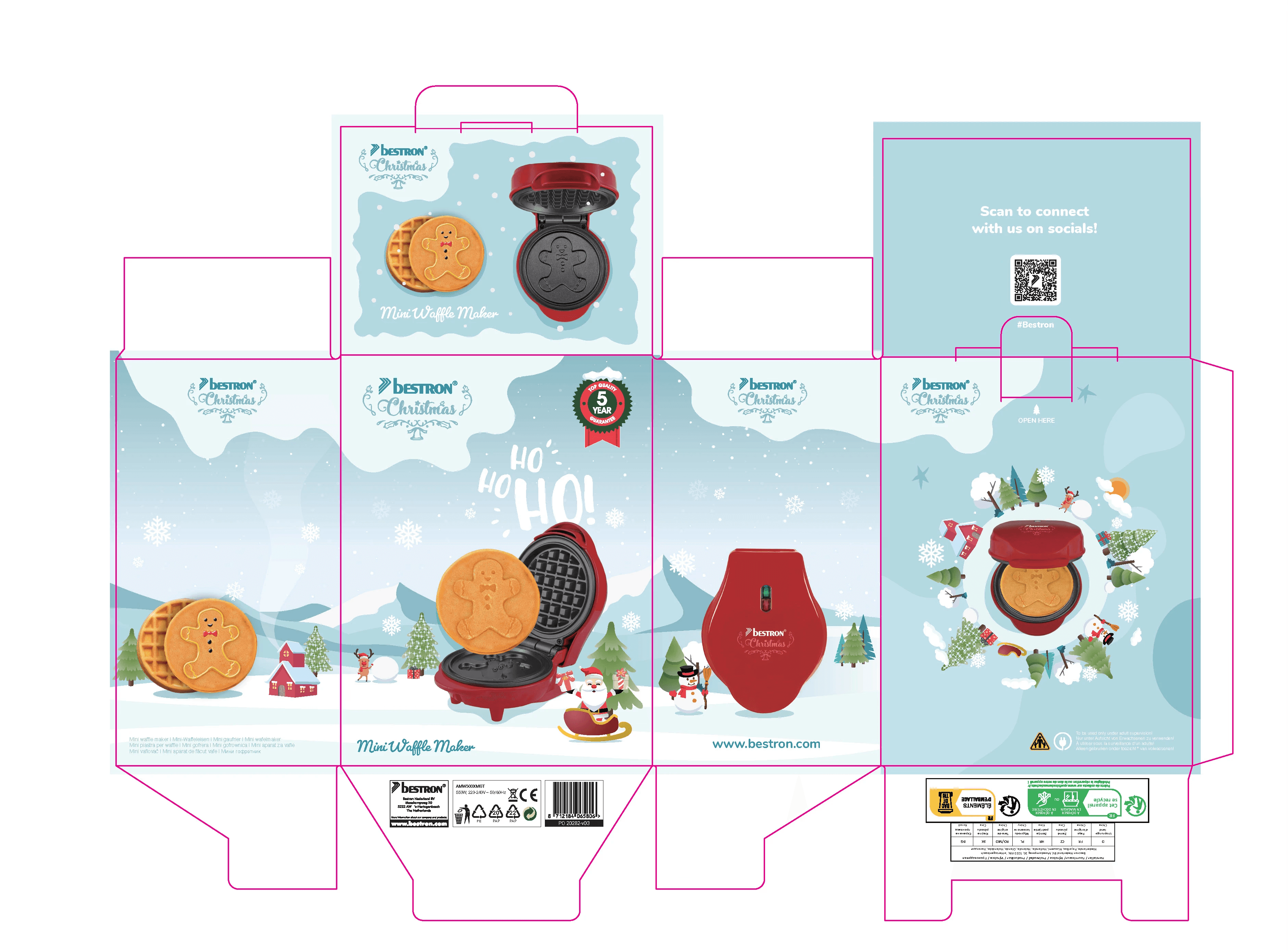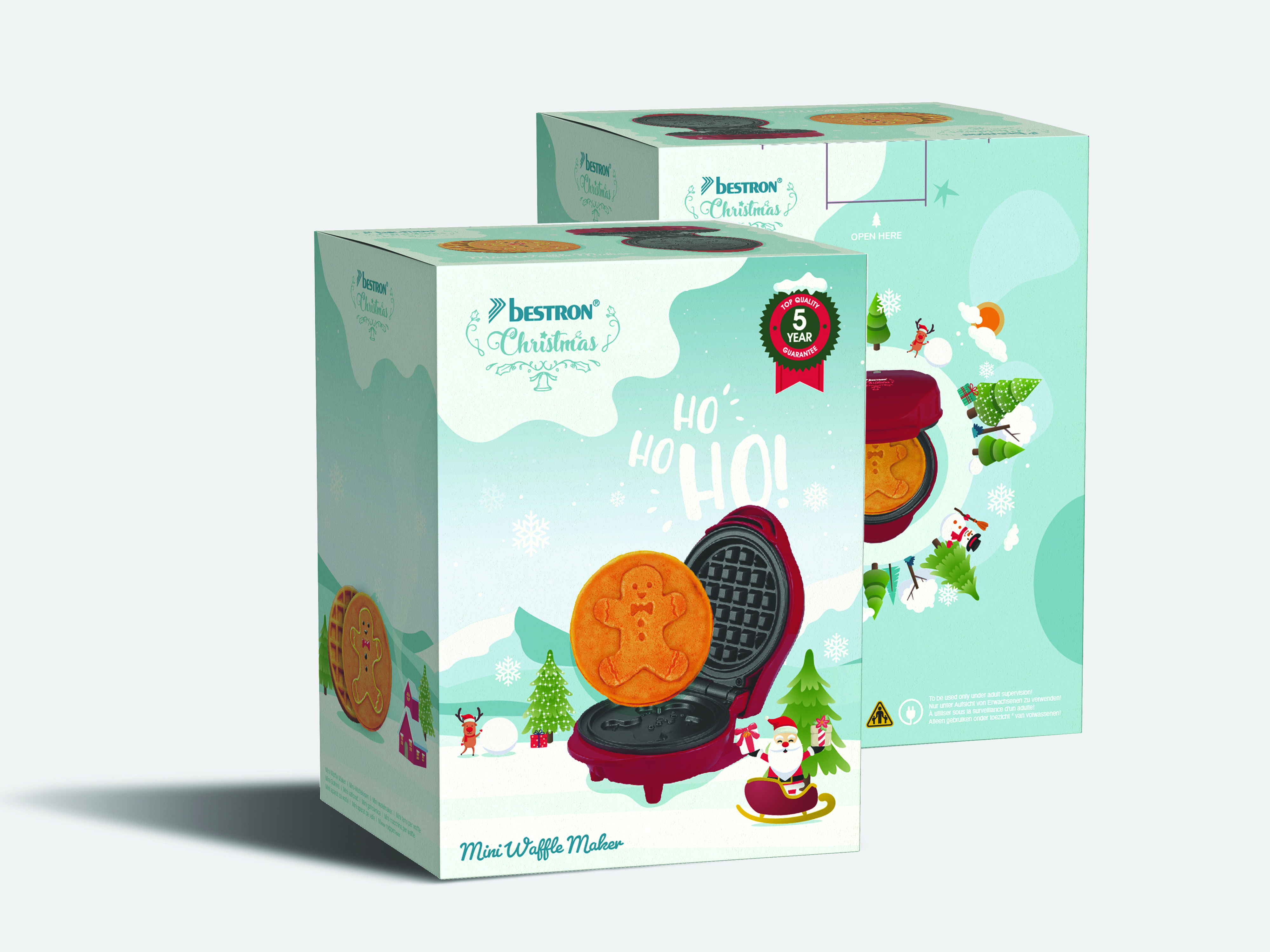 Project Overview : This project showcases the design process behind the packaging for Bestron's Christmas-themed waffle maker. The goal was to create an eye-catching and festive design that captures the spirit of Christmas while clearly communicating the product’s key features and playful appeal.