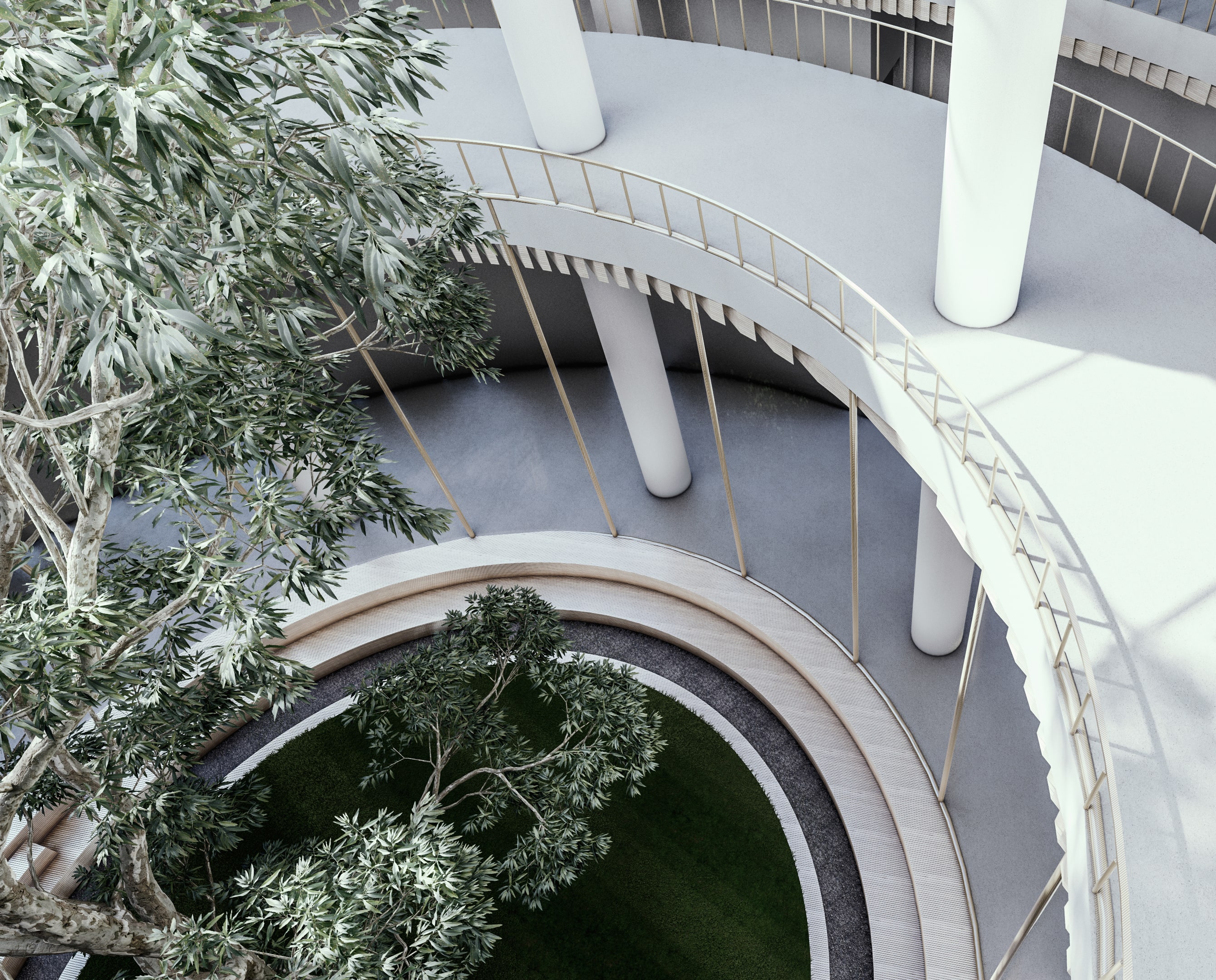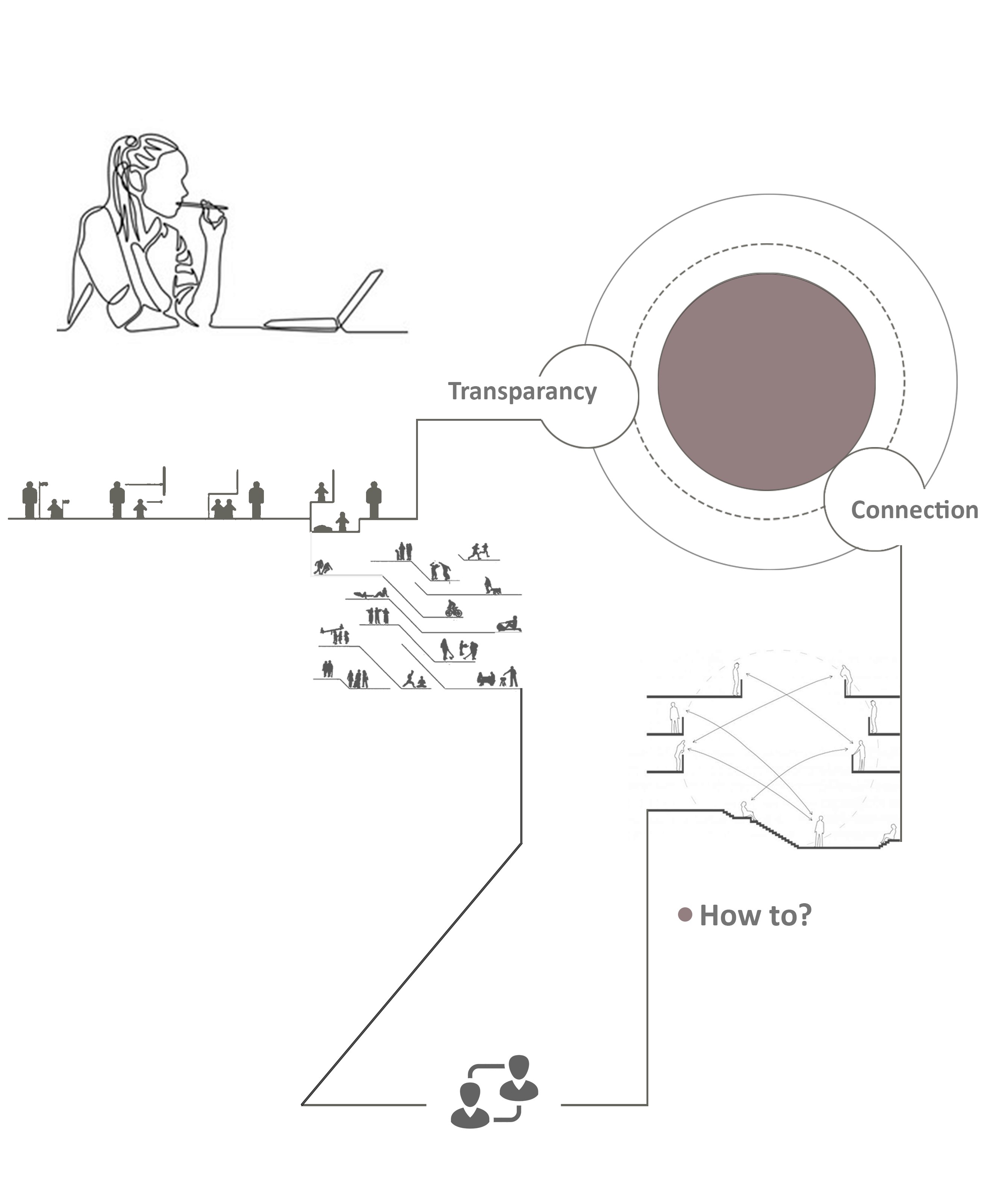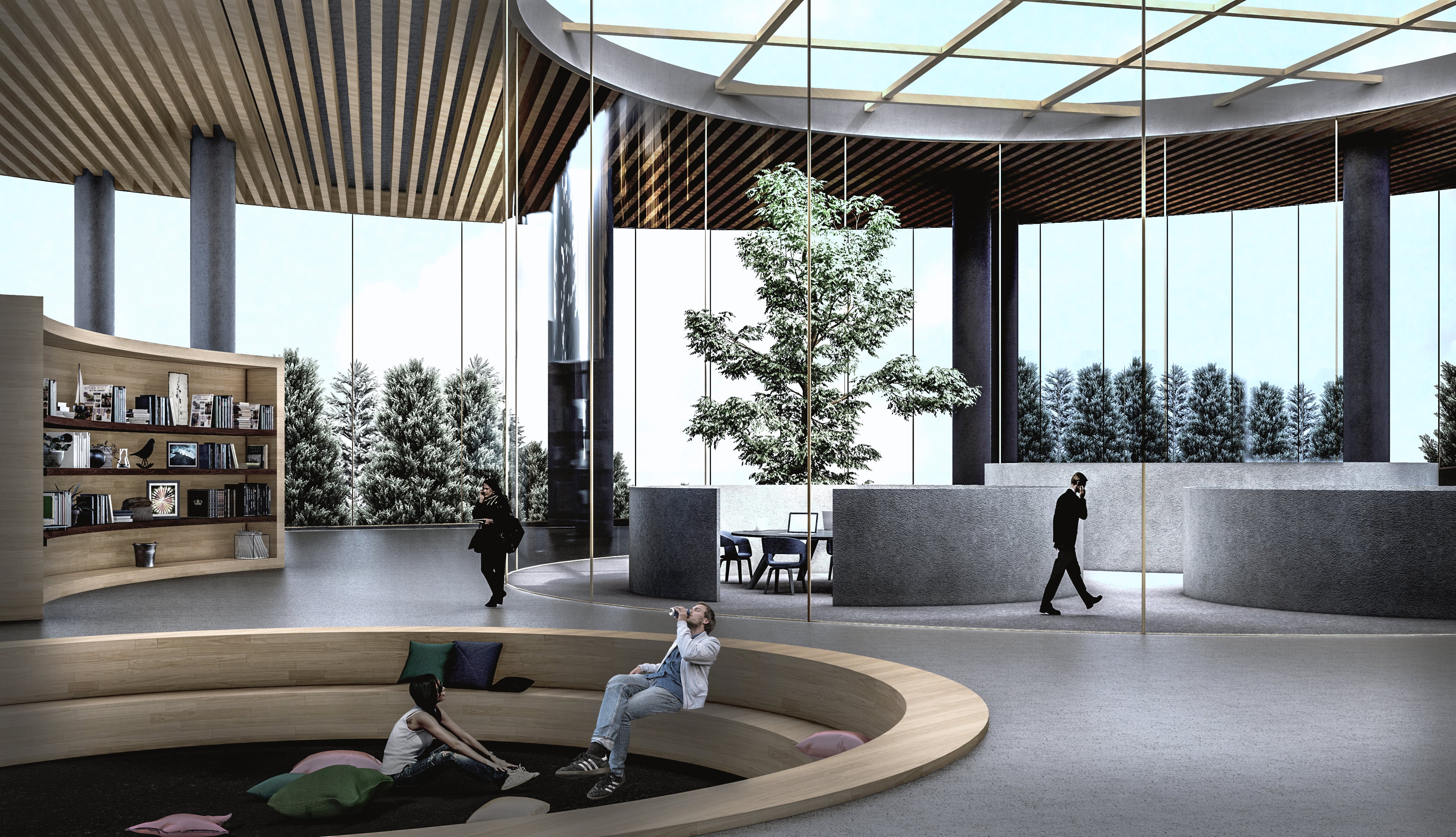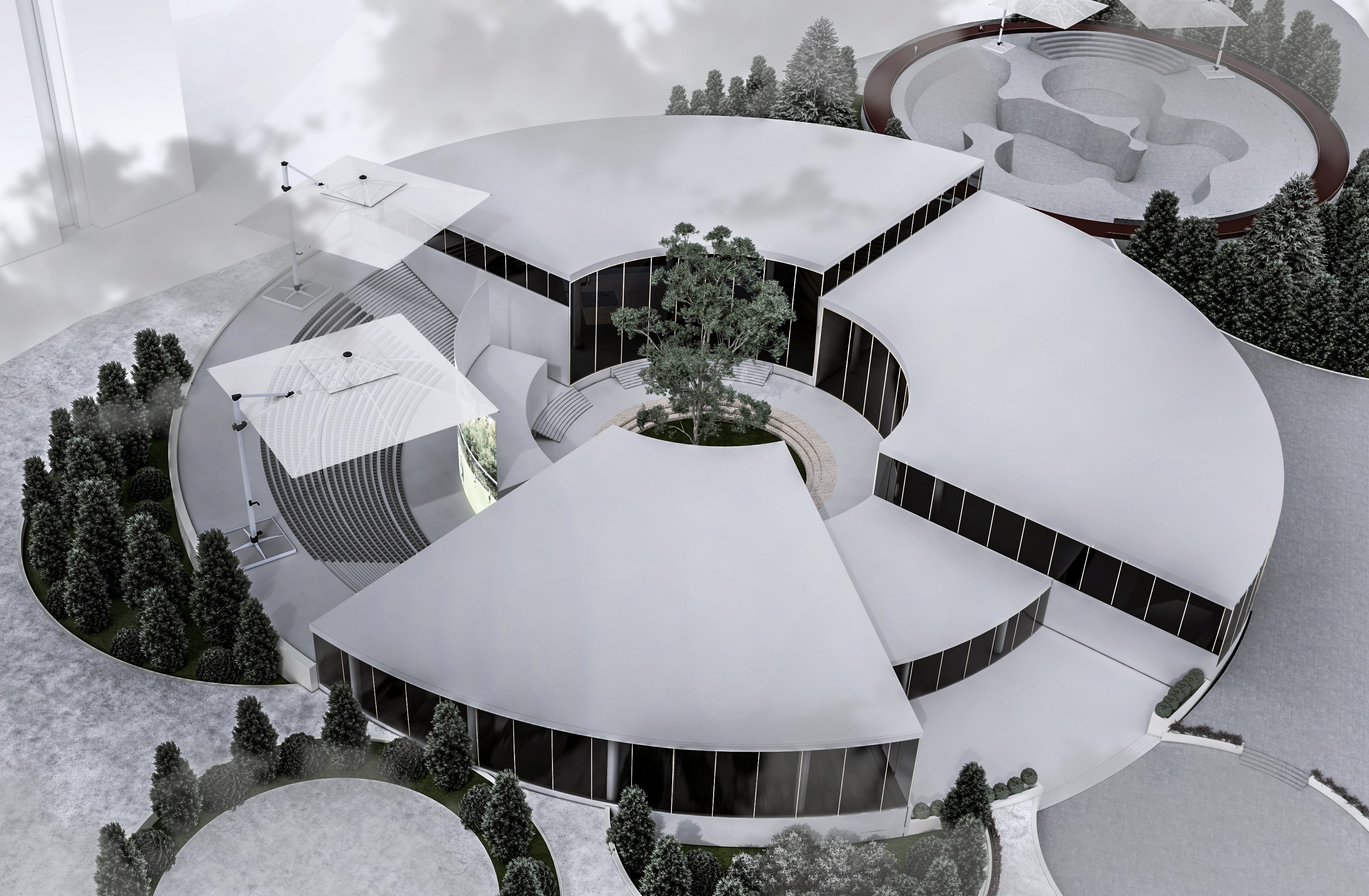 The concept centers on creating a space defined by transparency, connection, and fluid movement. Clear sightlines and open pathways allow activities to remain visible and inviting, encouraging a sense of inclusivity and shared presence. The circular form strengthens interaction, guiding people naturally toward one another, while tiered communal areas support different types of gathering and activity. Together, these elements shape an environment that feels continuous, dynamic, and harmonious reflecting the cantabile vision of a space that moves and flows like a seamless, expressive line.
