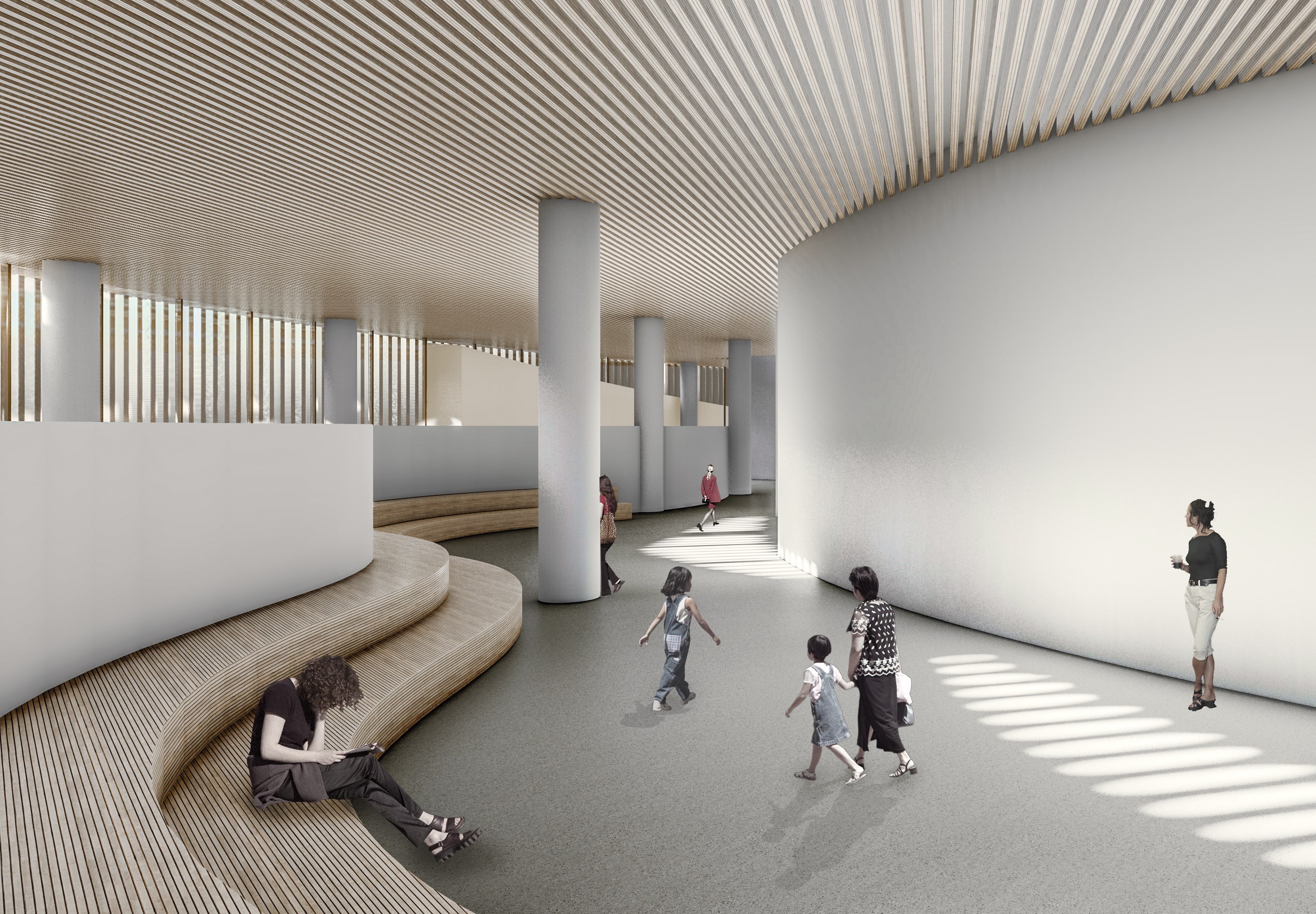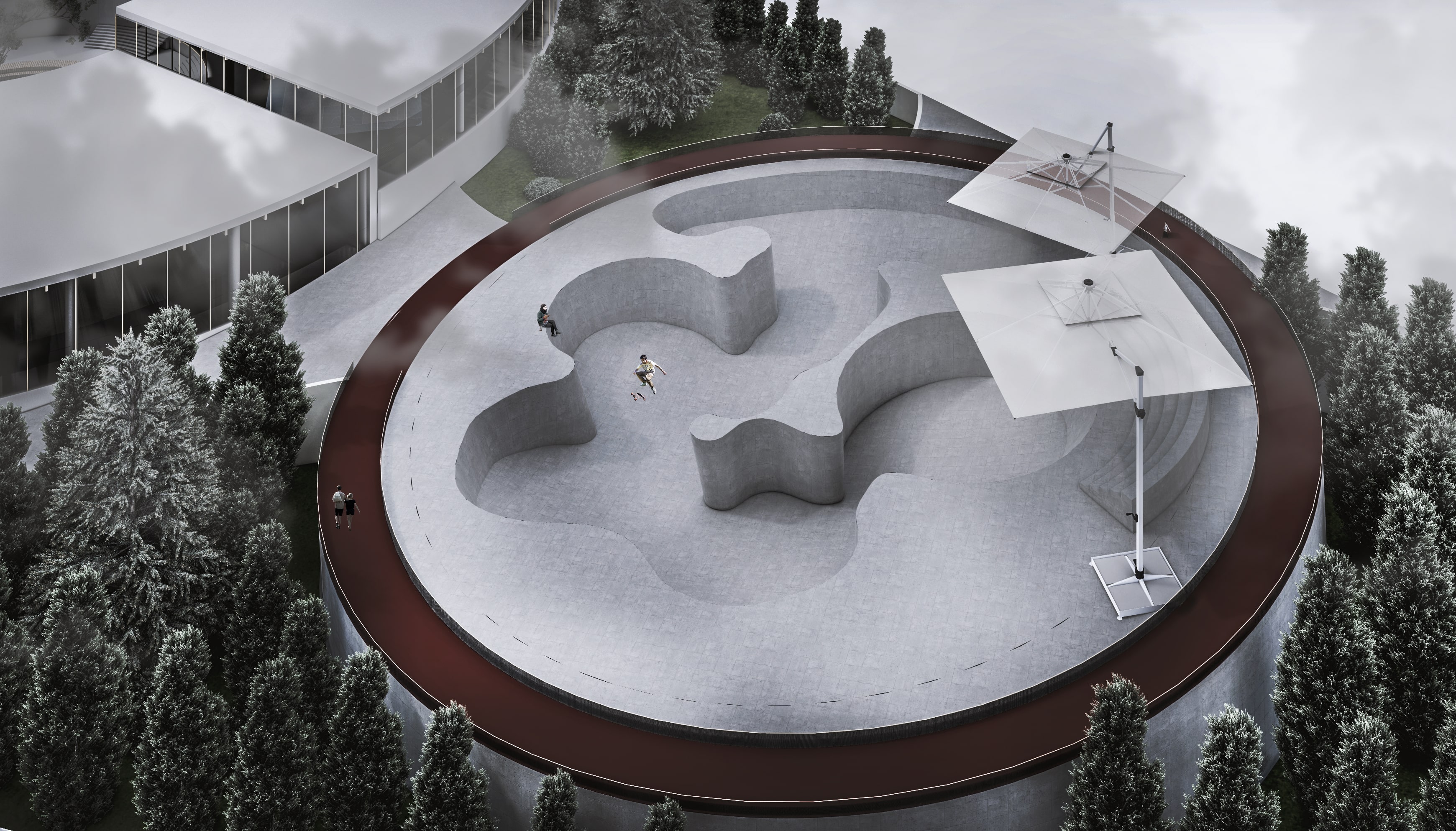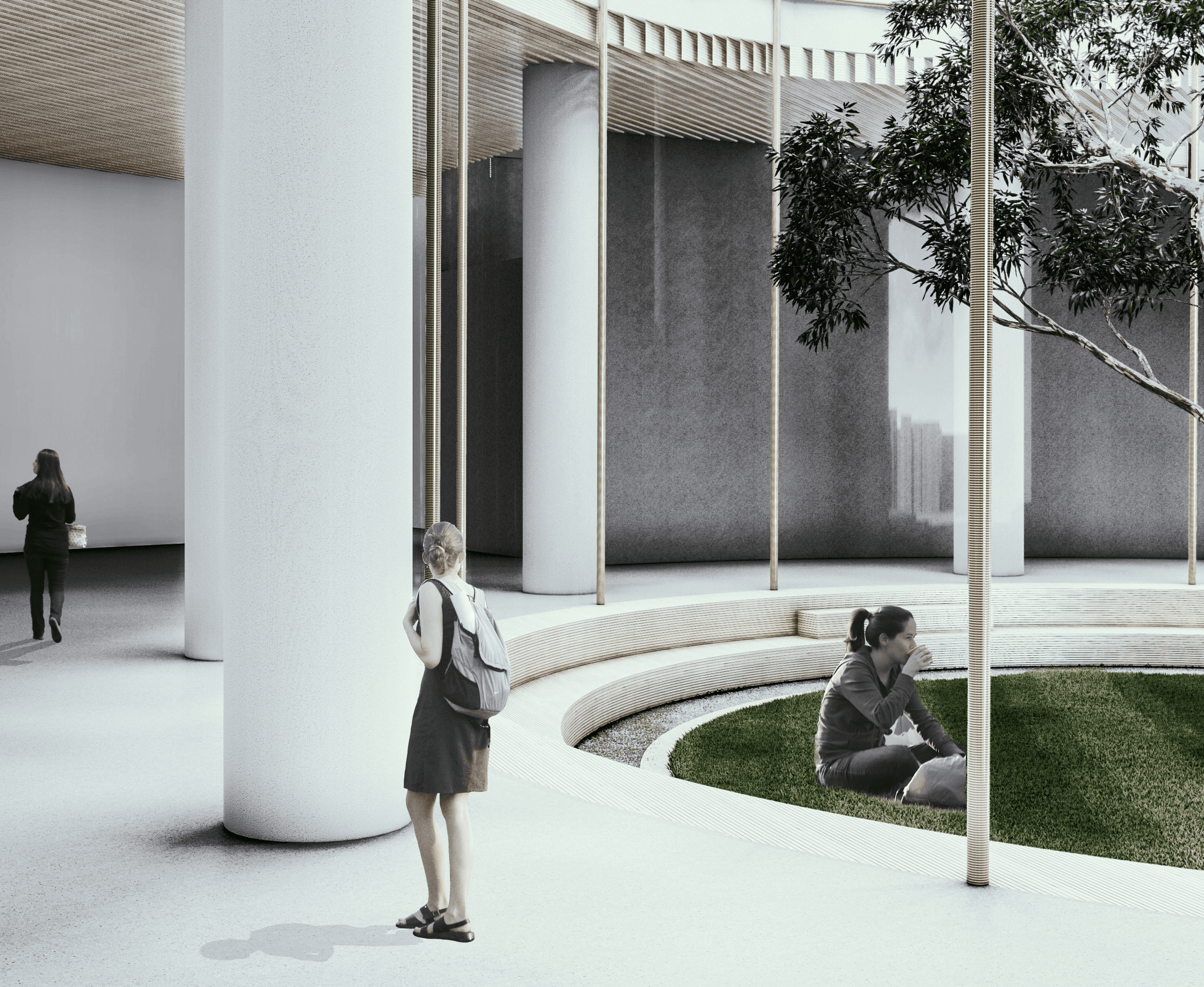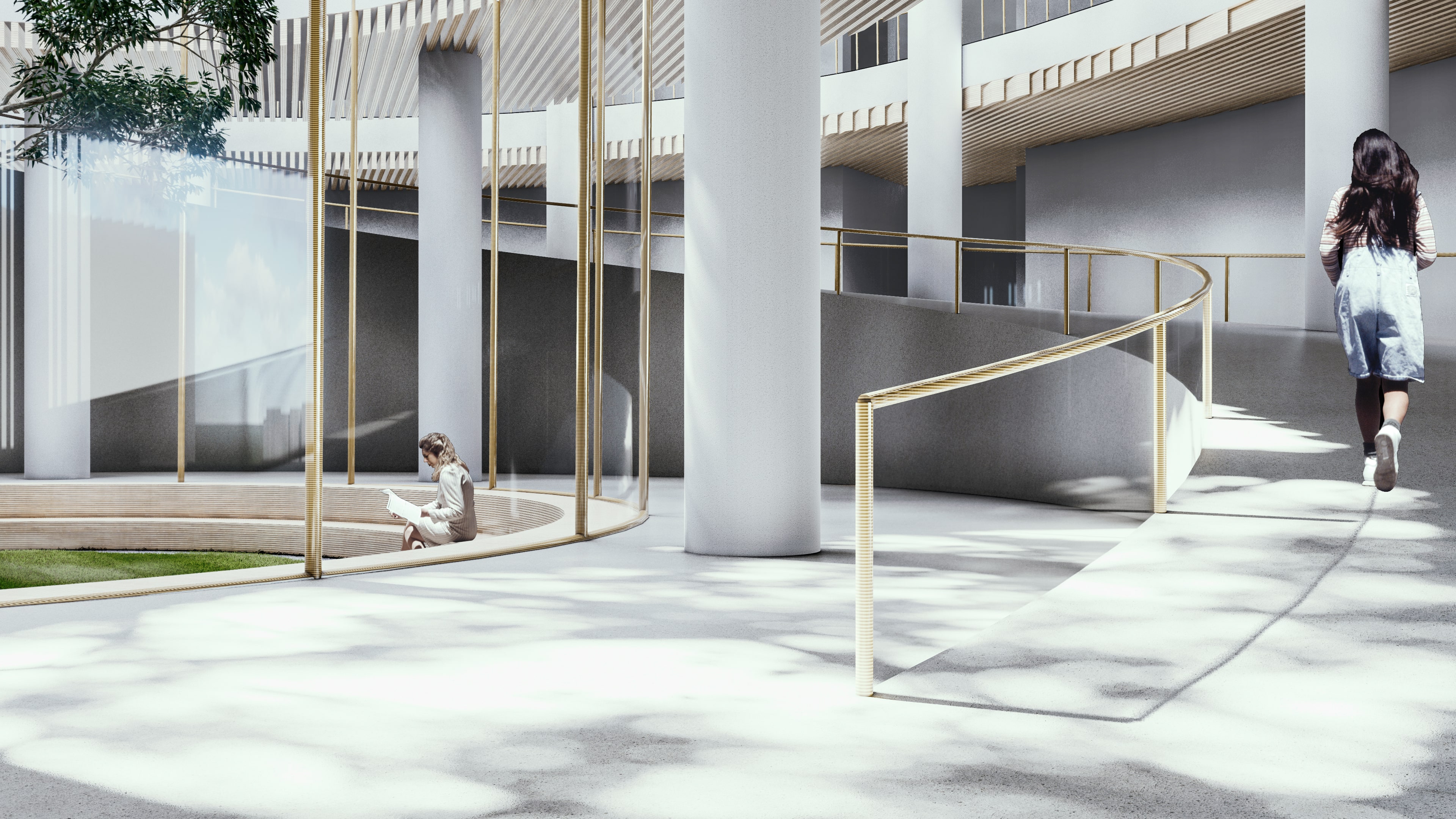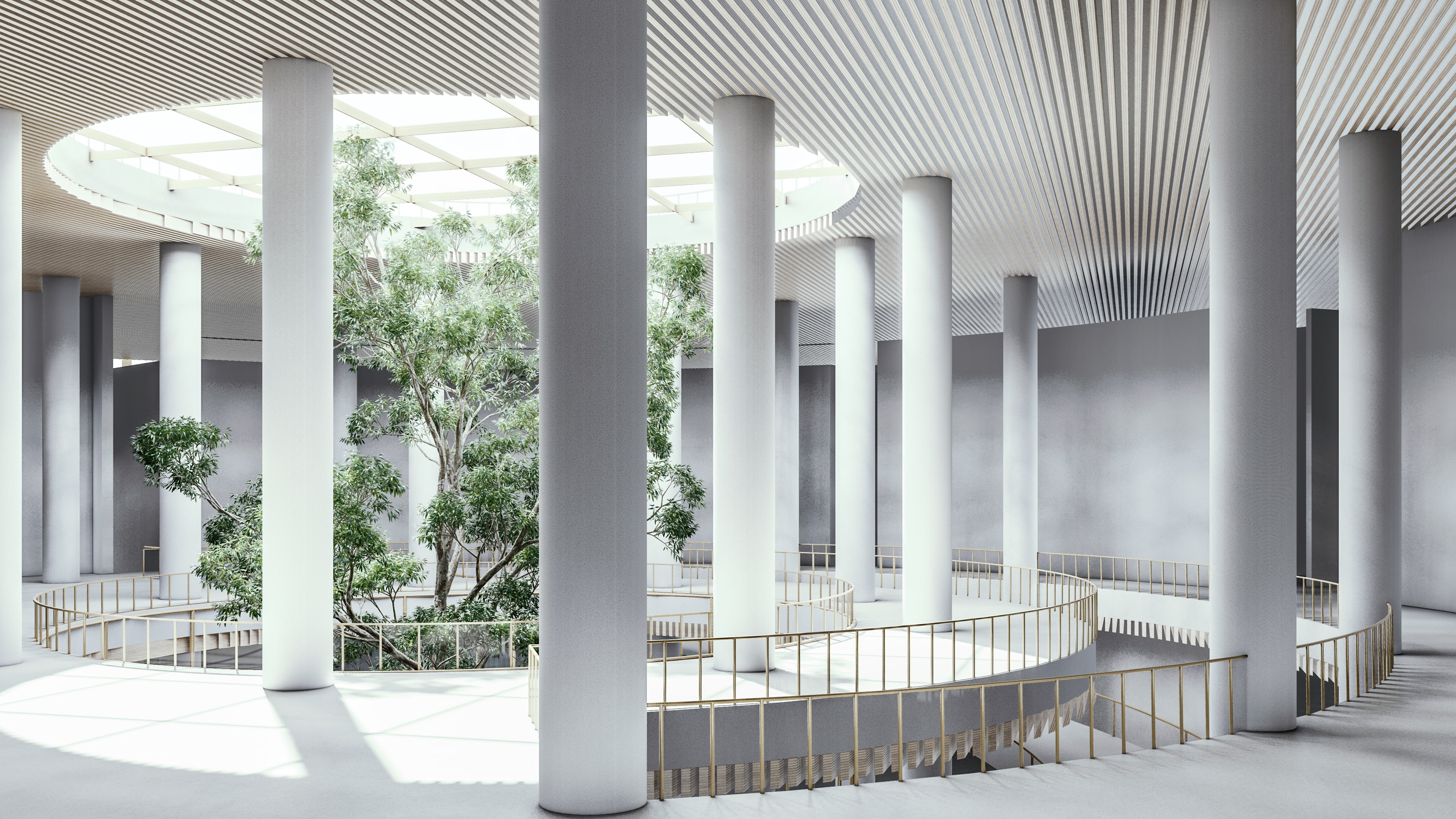 The concept centers on creating a space defined by transparency, connection, and fluid movement. Clear sightlines and open pathways allow activities to remain visible and inviting, encouraging a sense of inclusivity and shared presence. The circular form strengthens interaction, guiding people naturally toward one another, while tiered communal areas support different types of gathering and activity. Together, these elements shape an environment that feels continuous, dynamic, and harmonious reflecting the cantabile vision of a space that moves and flows like a seamless, expressive line.