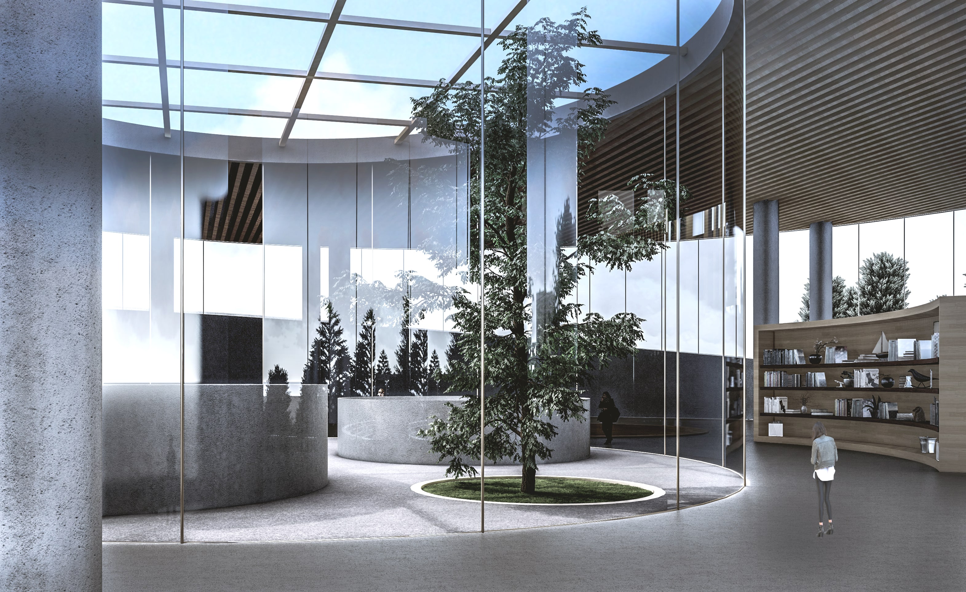 The concept centers on creating a space defined by transparency, connection, and fluid movement. Clear sightlines and open pathways allow activities to remain visible and inviting, encouraging a sense of inclusivity and shared presence. The circular form strengthens interaction, guiding people naturally toward one another, while tiered communal areas support different types of gathering and activity.