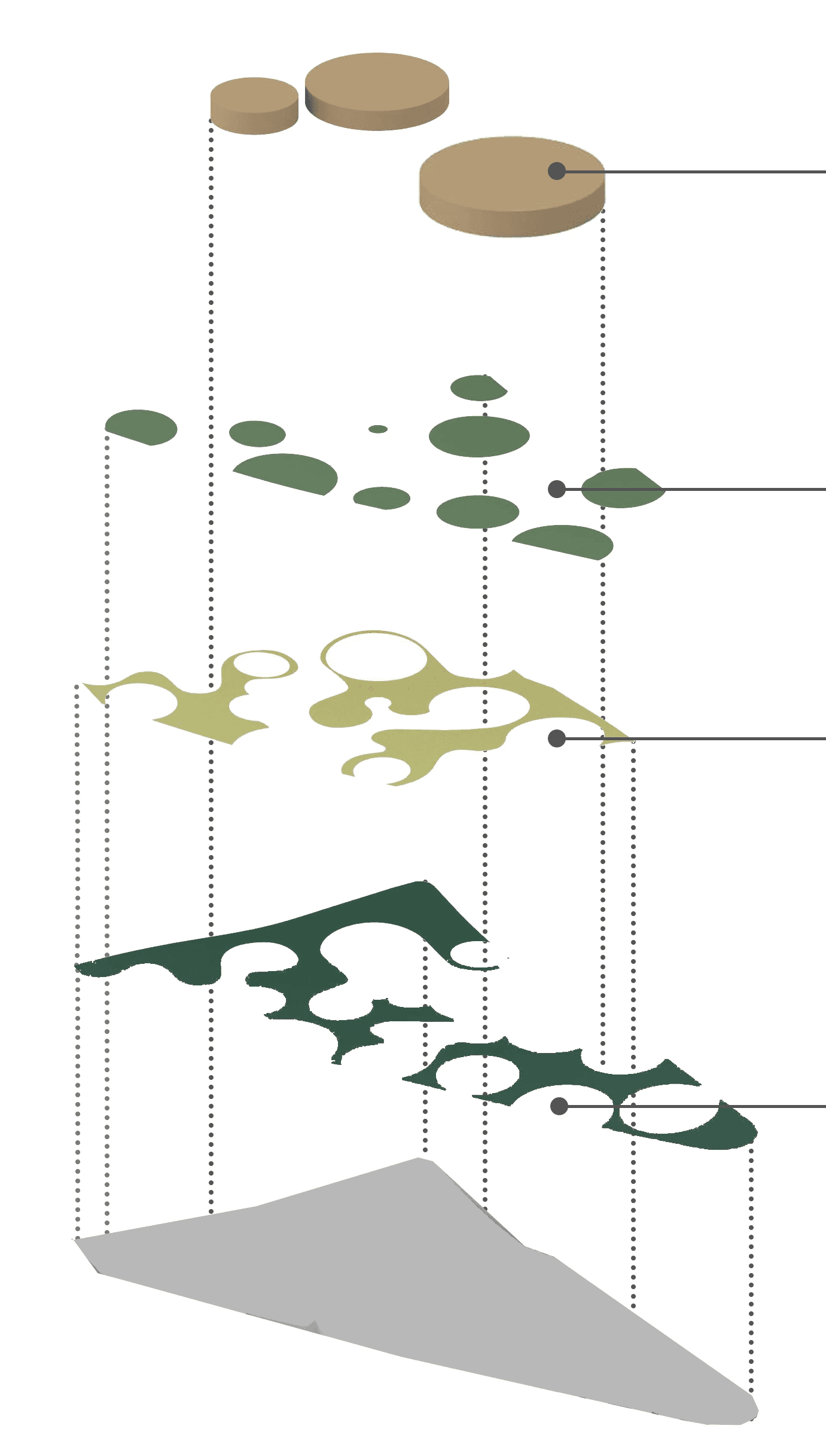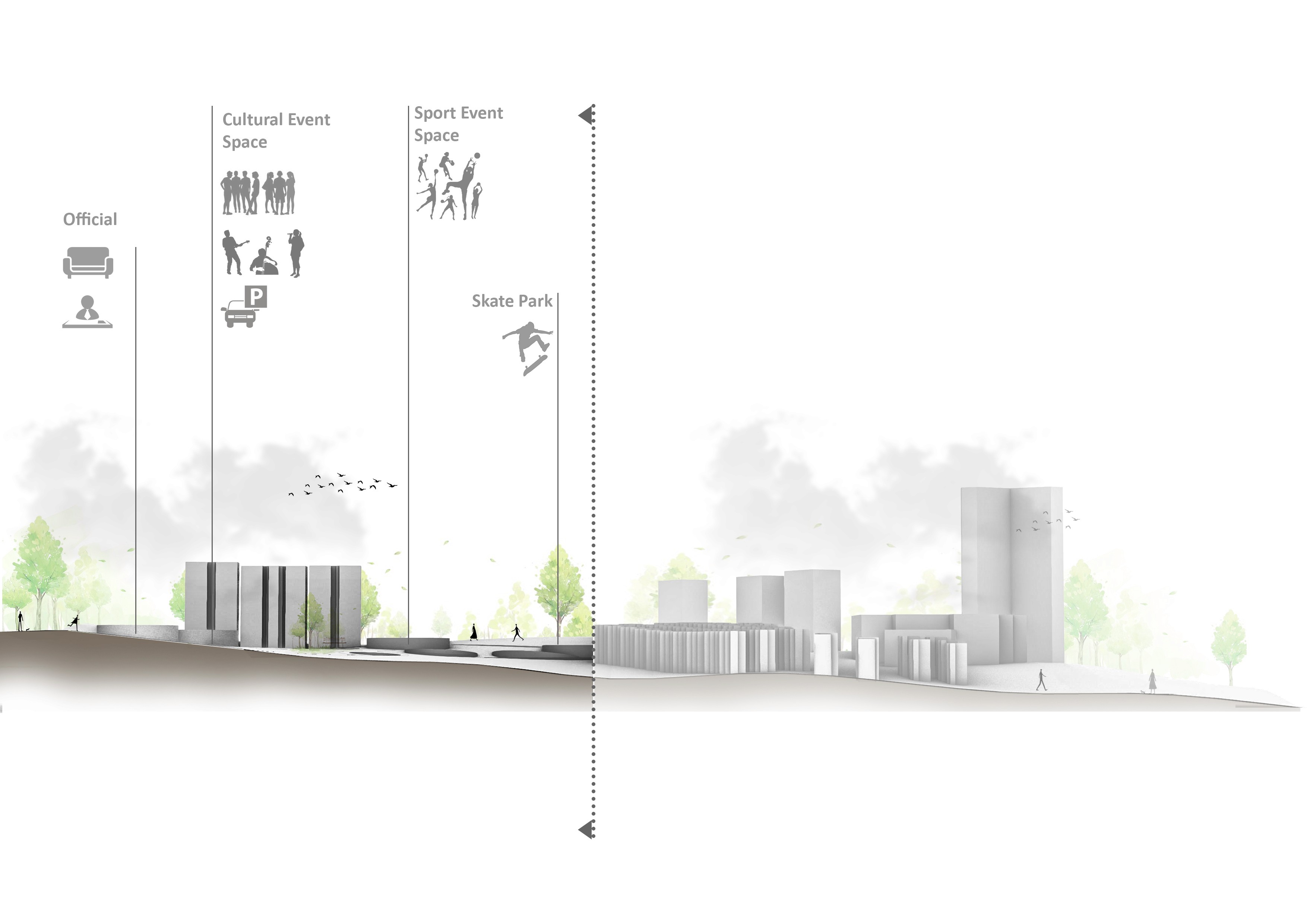 The design embraces the site’s natural hills through a strategy of superimposition, layering the architecture onto the existing terrain rather than reshaping it. By allowing the building to follow the land’s natural rises and slopes, the project creates seamless transitions between levels, forming stepped platforms and interconnected pathways. This approach not only minimizes disruption to the landscape but also enhances movement, visibility, and gathering opportunities turning the hill’s complexity into an asset that enriches the spatial experience.