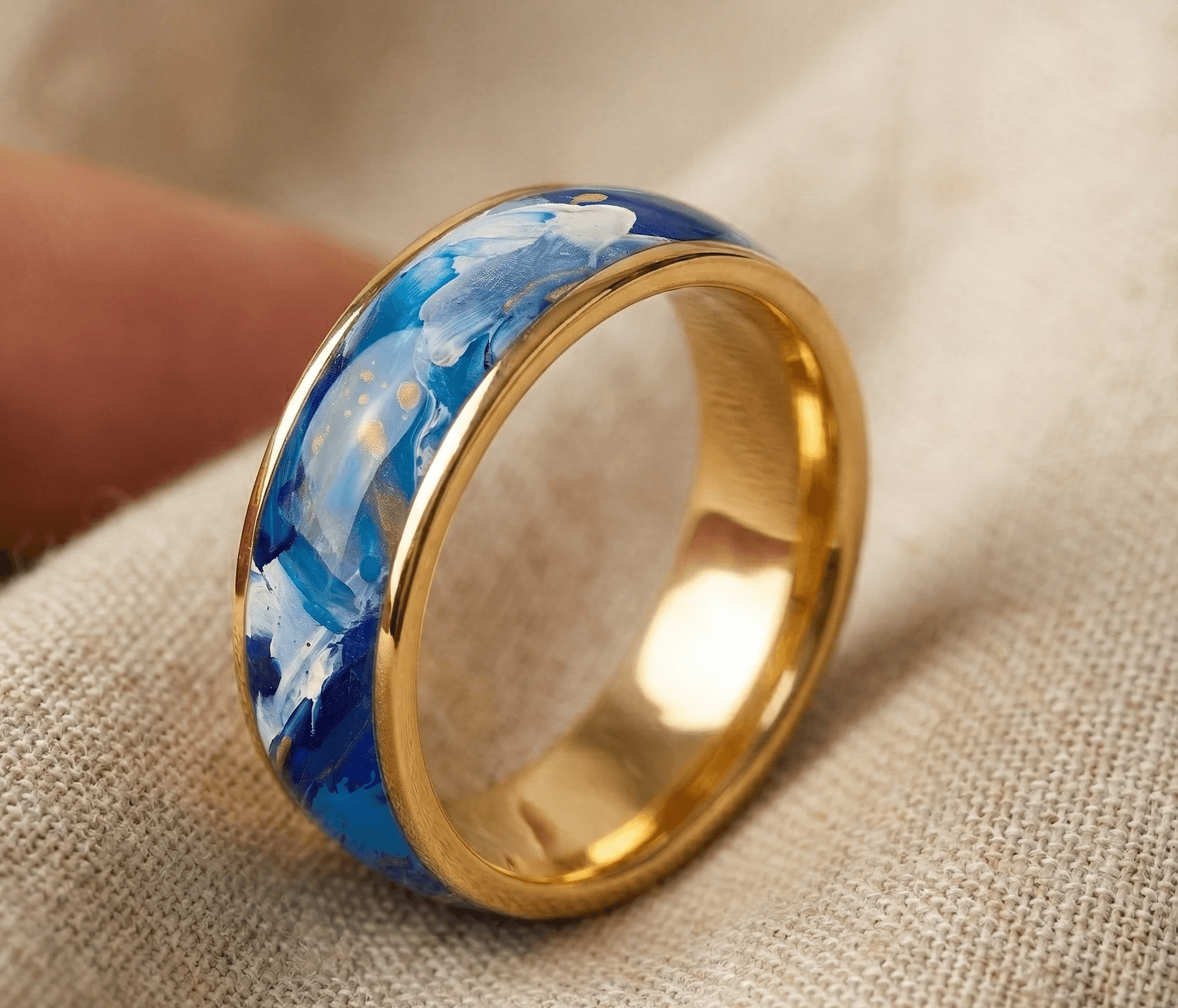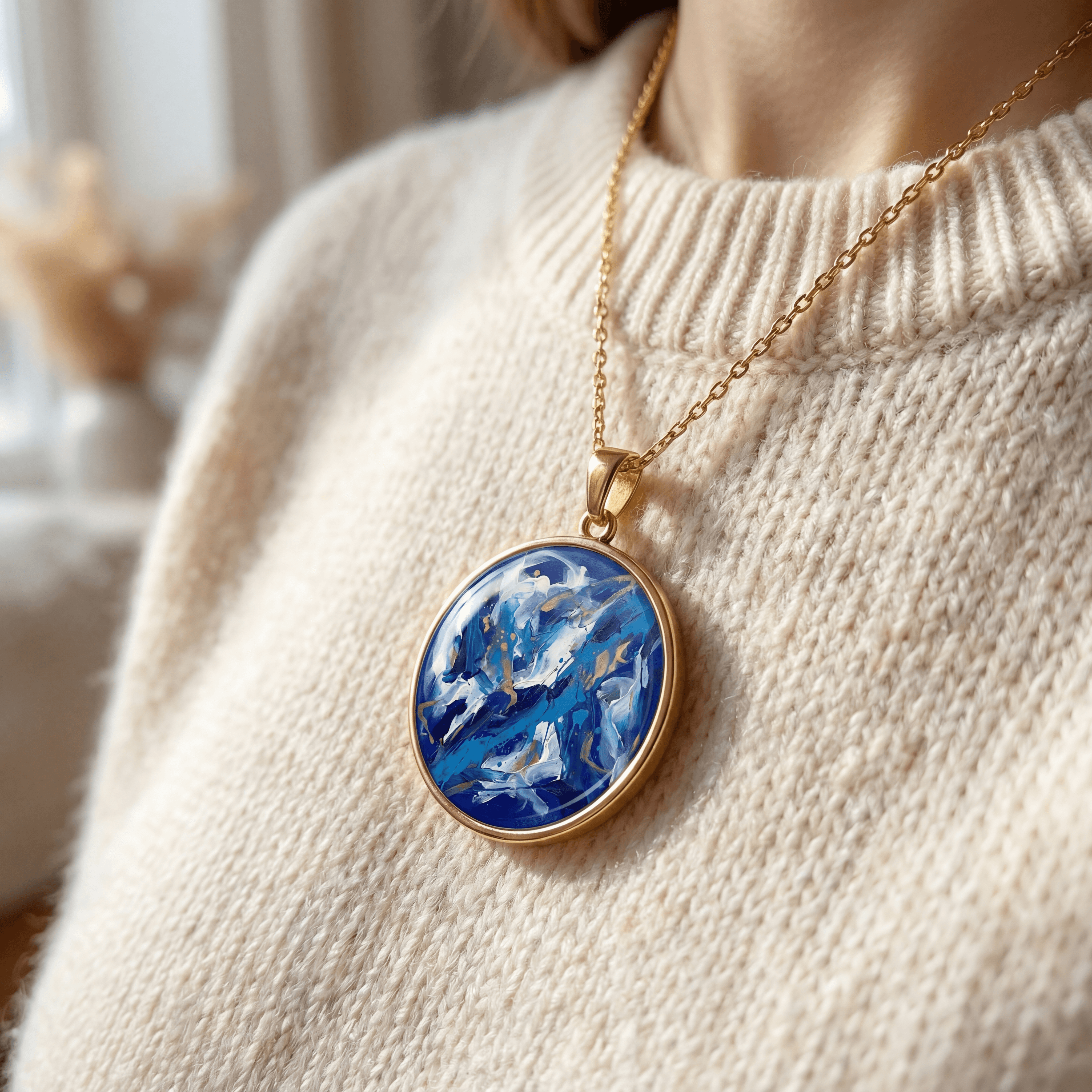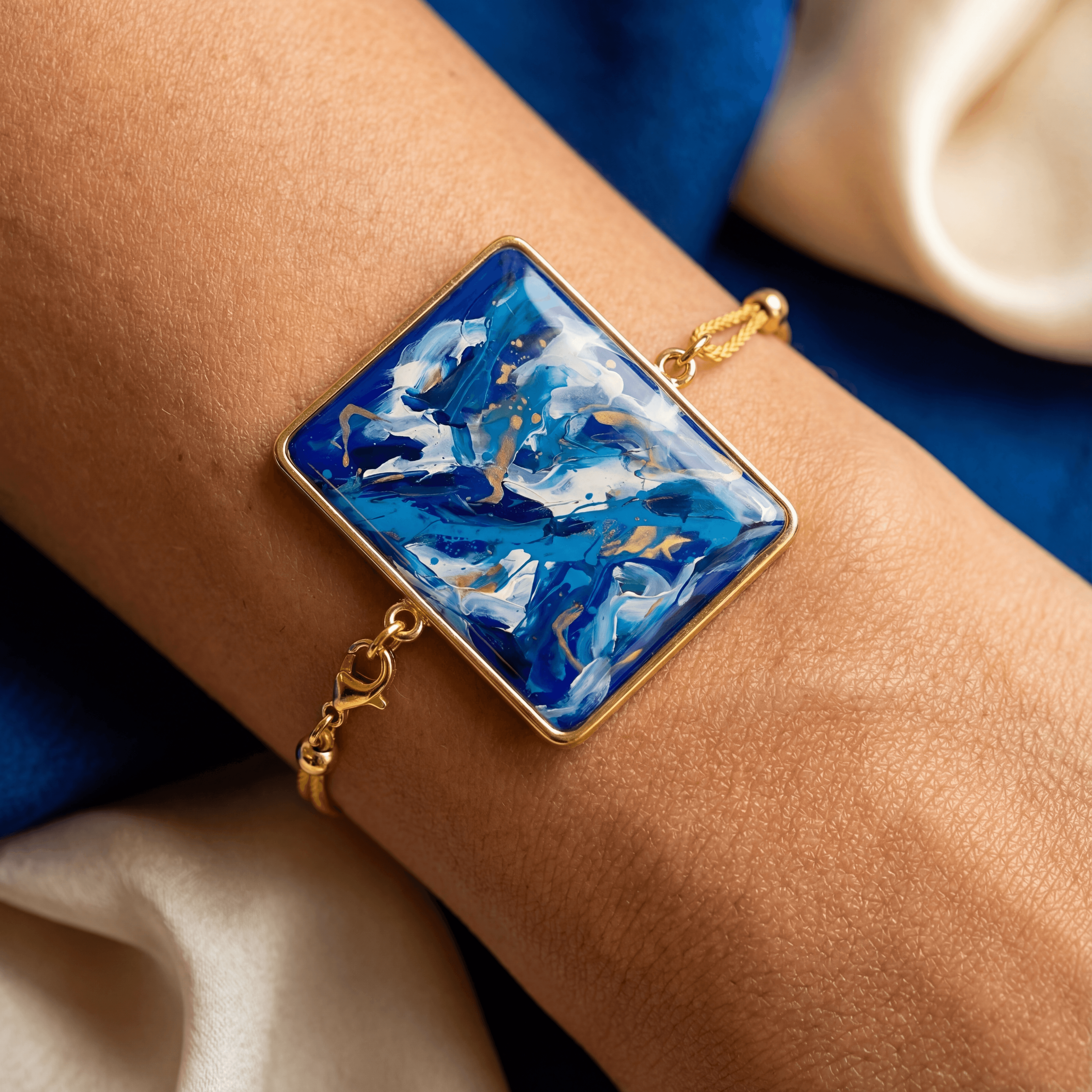 This pattern is Inspired by the mysteries of the cosmos, this design mixes deep blue waves with the glow of distant gold stars.